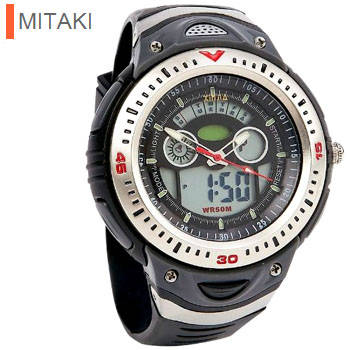 Powerfully styled and packed full of features, this Mitaki-Japan Digital & Analog watch offers a stylish black sports resin band that will stay comfortable during your most active sport outings.