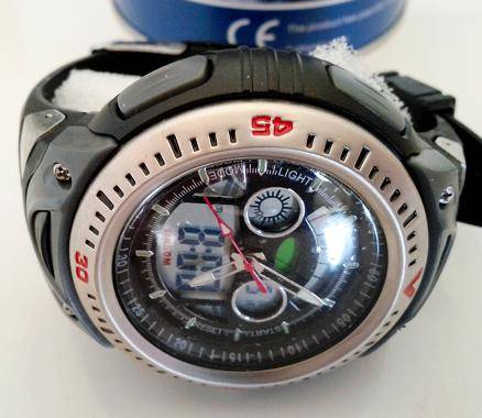 The face of this men's sport watch provides current digital time and analog time with the date, a light and an alarm with an hourly chime and even a snooze feature.