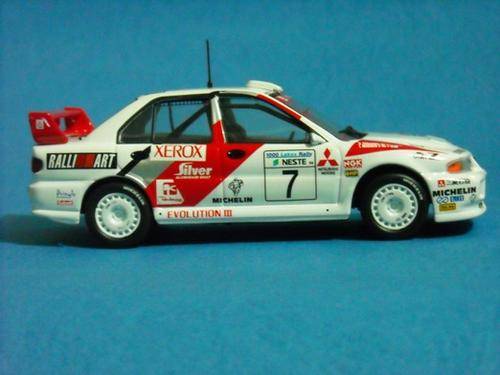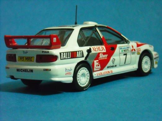 Mitsubishi Lancer EVO III. 1000 Lakes Rally 1996. (T.Makinen-S.Harjanne) Altaya 1/43 die cast model Rally car. Model mounted on display base.