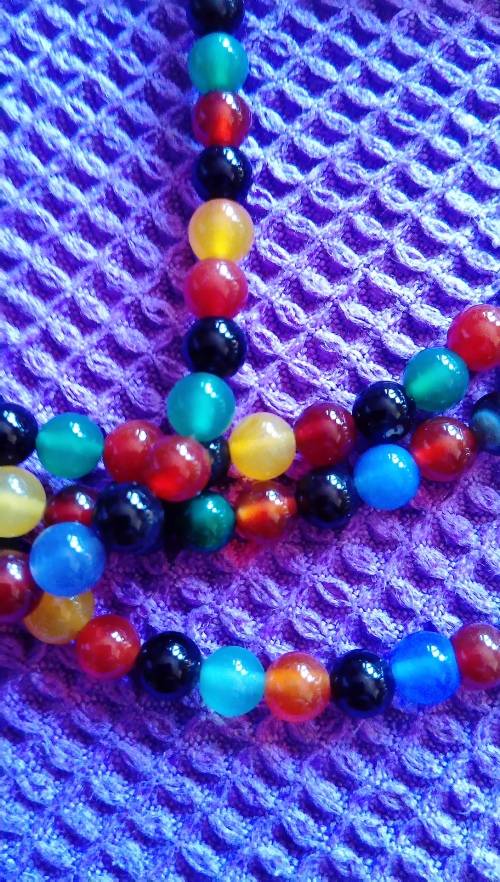 MIX AGATE GEMSTONE BEADS. 38.5 CM LONG STRING. 6 MM ROUND BEADS.