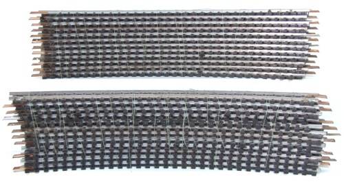 On auction are these mixed metal tracks in good used condition. These tracks was fitted to a layout and has a few sleepers broken, appx 1%. Slight corrosion present on these tracks. Please see photos for detail.