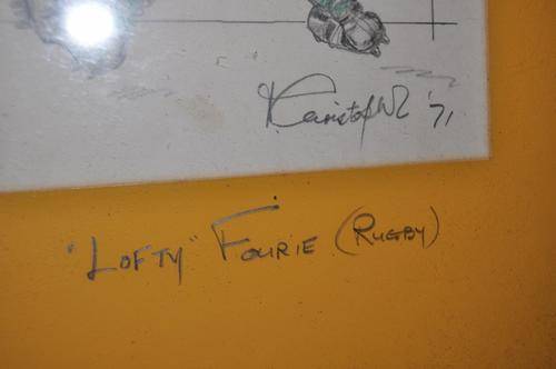 MIXED MEDIA RUGBY DRAWING,FRAMED,SIGNED BY ARTIST 1971