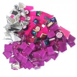 250g CERISE/MAUVE mixed media mosaic tiles and embellishments