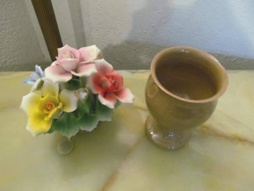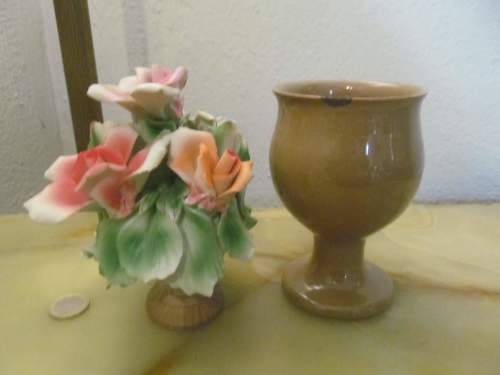 VINTAGE LOT OF ITALIAN FINE PORCELAIN CAPODIMONTE STYLE FLORAL ORNAMENT & CERAMIC GOBLET