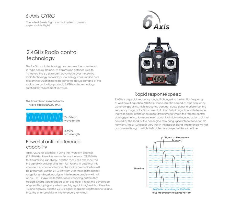 - 2.4G technology adopted for anti-interference.even more than one quadcopter is flying at the same time they will not interfere with each other.