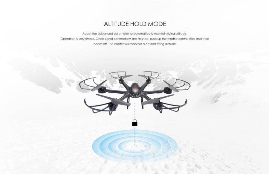 - With Altitude Hold Mode,adopt the advanced barometer to automatically maintain flying altitude.