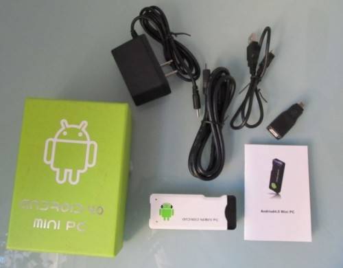 | Package contents | Both the Chinese and English version packages come with a MK802 device, a charger, an HDMI cable, a USB cable and a USB adapter. |