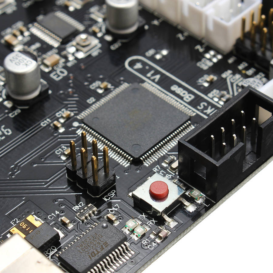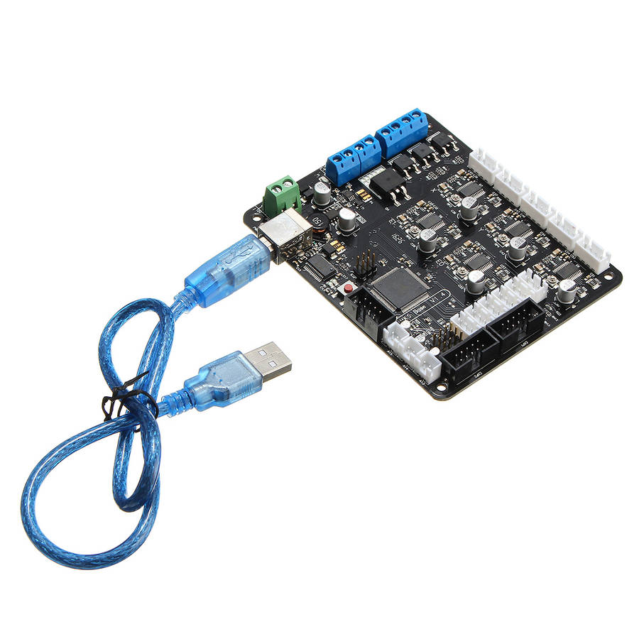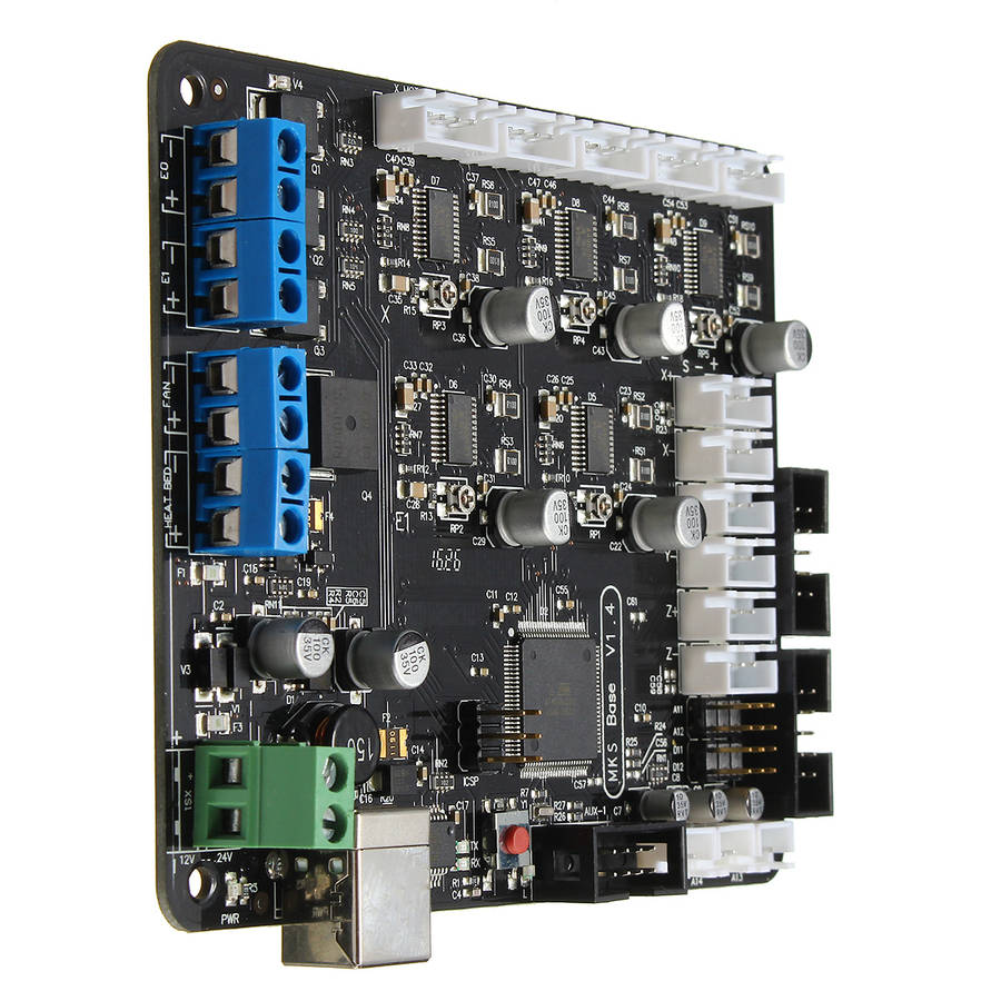 Package weight: 0.10 kg Features: 1. This is the combination of Arduino MEGA2560 + RAMPS1.4 + 5 x A4988 drivers (remix board) 2. Arduino MEGA compatible Atmega2560 and FT232 processors are compatible with all RAMPS class firmware Firmware can use the same configuration as RAMPS1.4 3. It is suitable for dual-Extrude printer Easy DISPLAY + SD-CARD connector, RepRapDiscount SmartController compatible pin header on board 4. 3x temperature ADC connectors for thermistors 5. Up to 5 motor drivers with A4982 6. 4x PWM capable power mosfet outputs with voltage selector for MainPower.(Bed, Extruder0, Extruder1, Fans) 7. 4 layers PCB, optimize heat dissipation. 8. 6x end stop connectors with power supply Xmin/Xmax/Ymin/Ymax/Zmin/Zmax 9. Recoverable fuse for short-circuit protection. Fireware: This section will show you how to get firmware into your controller and run it with basic settings. Software required: FTDI USB drivers, Arduino IDE, Choice of firmware ( Marlin or Repetier or Sprinter ), Pronterface USB VCP Drivers - MKS Base uses the newer FT232 USB to UART chip and it needs the updated VCP(virtual com port) drivers from the manufacturer's website . Download the correct version for your operating system or you can get the executable version for Windows(easier). Windows Vista/7 may try to do an update to locate the proper drivers but it is recommended to install the FTDI drivers for better performance. The VCP drivers will install a COM Port on your computer for the MKS Base, you can check what port number was assigned by going to your device manager and click on Ports(COM & LPT) look for something that says "USB Serial Port(COM3)" where COM3 is you assigned port number(will vary from PC to PC). Remember this number as you will be using it later in configuring other software. Install Arduino IDE - Download and extract the Arduino IDE . Get your firmware - While you can use most firmwares out there, we will use Marlin as an example. Download and extract Marlin or any other forks of the firmware that you prefer/need. Upload firmware - Run the Arduino IDE (arduino.exe). Select your board - Click on Tools -->Board -->Arduino Mega 2560, Select your serial port - Click on Tools-->Serial Port-->(select your COM port for the X3 USB, you can check this in Device manager) On Arduino click File-->Open -- then point to your Marlin Download and select Marlin.pde. With Marlin loaded on the IDE window, click on the tab that says "configuration.h". These are the basic entries that you need to change to get the X3 working. #define BAUDRATE 250000 //This will work fine for the MKS Gen #define MOTHERBOARD 33 //33 is for RAMPS which the MKS GEN is compatible with MOTHERBOARD 34 #define TEMP_SENSOR_0 3 //If you have the NTC 100K #define TEMP_SENSOR_1 0 #define TEMP_SENSOR_2 0 #define TEMP_SENSOR_BED 3 //If you have the NTC 100K Package included: 1 x MKS Base V1.4 3D Printer Controller Board 1 x USB Cable