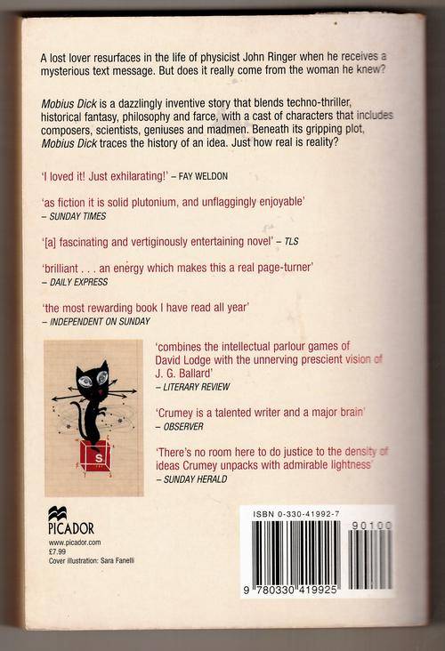 But while Mobius Dick is a work of sophisticated erudition, its playfulness and artistry make it a page-turner, too. It is perhaps the only novel about quantum mechanics you could imagine reading while lying on a beach. - Joseph O'Connor.