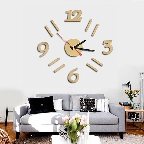 Brand New and high quality. Made of acrylic material, waterproof and eco friendly. Suitable for smooth walls of living room, kids bedroom, dining room, etc. The wall clock is with 3D effect and mirrors face. Wall sticker is easy to install and remove. Self-adhesive, non toxic and safe for the children. Silent sweeping movement and mute movement. The decals can be applied on all smooth surfaces, such as walls, doors, windows, closets, etc. Can be used for gifts, crafts, home decoration, etc. Specifications: Material: Acrylic Color: Gold/Silver Size:(L)X(W)40X40cm /15.75''X15.75''(appr.) Second hand length: 16.5cm/6.50"(appr.) Minute hand length: 13cm/5.12"(appr.) Hour hand length: 8.5cm/3.35"(appr.) Dial Diameter: 9cm/3.54"(appr.) Posted good size: 40X40cm/15.75"X15.75"(appr.) Power supply: 1x 1.5V AA batteries (not included)