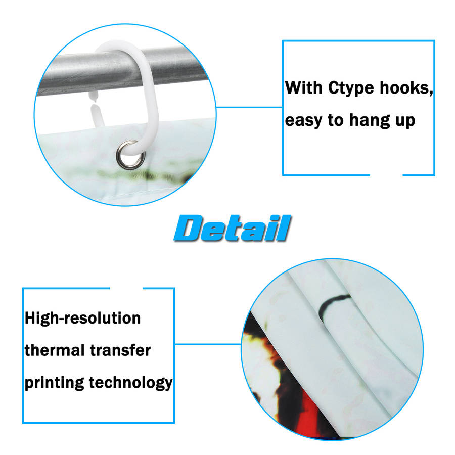 - Keyhole, high-resolution thermal transfer printing technology. - Production of polyester, waterproof mildew. - Preventing water splashing outside of the shower and taking a blocking effect for the people of shower. Specification :