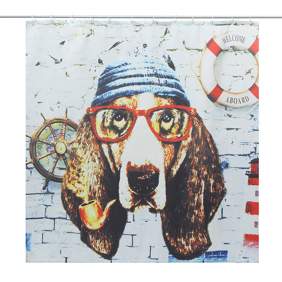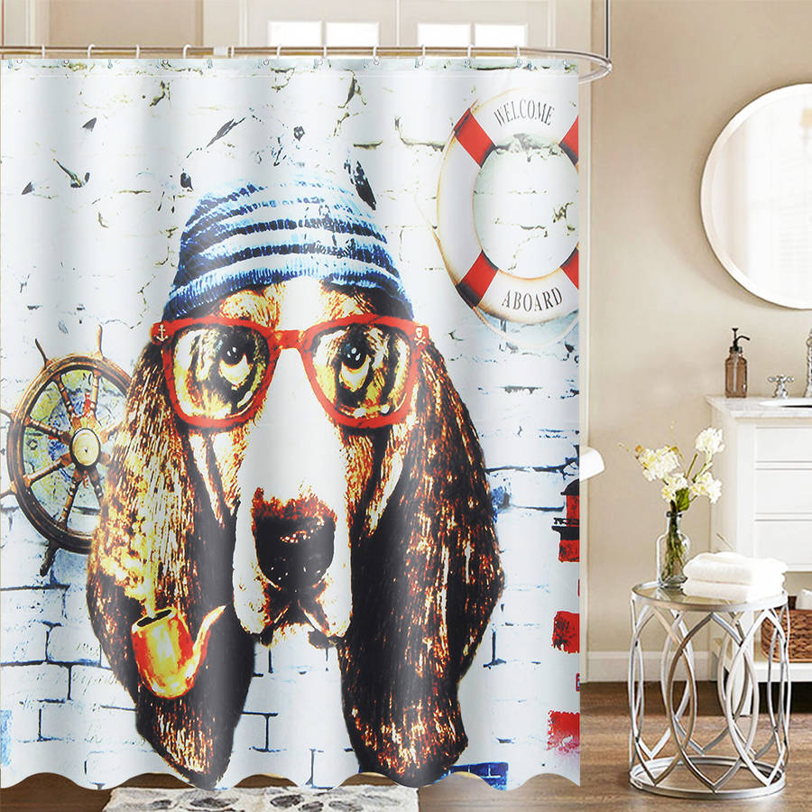 Modern Animal 3D Waterproof Polyester Shower Curtain Dog Octopus Pattern With 12 Plastic Hooks For Bath And Shower