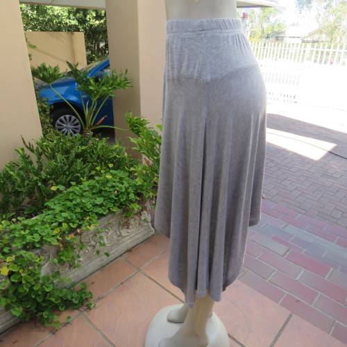 Modern easy to wear silvergrey high/low skirt by RT size 36 to 38. Yoked with elasticated waist.