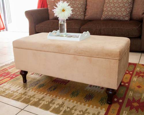 Invest in multi-purpose design with this rectangular storage ottoman from Home. This upholstered fabric ottoman with wooden feet boasts a cushioned tufted top for comfortable perching and a roomy interior compartment for storage. You can use this neutral colored bench as a combination coffee table and foot rest as well.