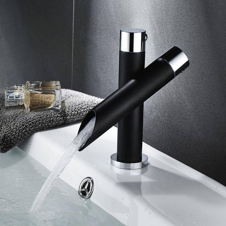 Modern Unique Bathroom Basin Faucet Single Handle Kitchen Sink Mixer Tap Waterfall Faucet Black