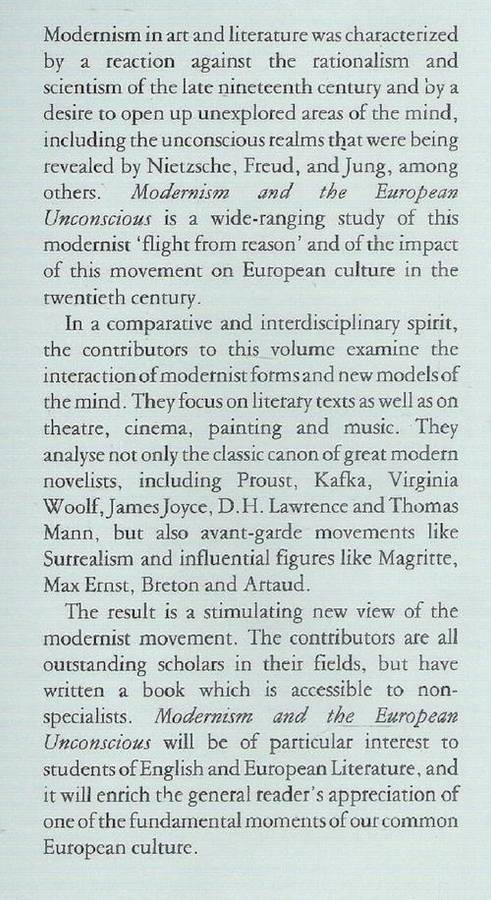 Modernism and the European Unconscious Edited By: Peter Collier & Judy Davies