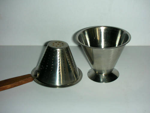 Modernist Danish Stainless Steel and Teak Tea Strainer