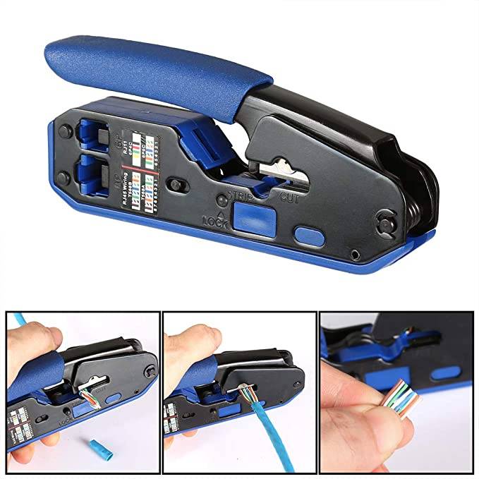 - Fast and reliable modular crimp installation tool for voice and data applications and 6P 8P RJ45 connectors and 6 and 8 position modular connectors (standard RJ11 / RJ12 connectors and RJ45 CAT5 CAT5e, CAT6 connectors).