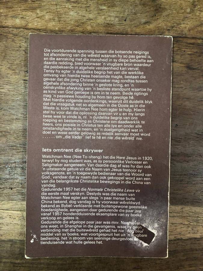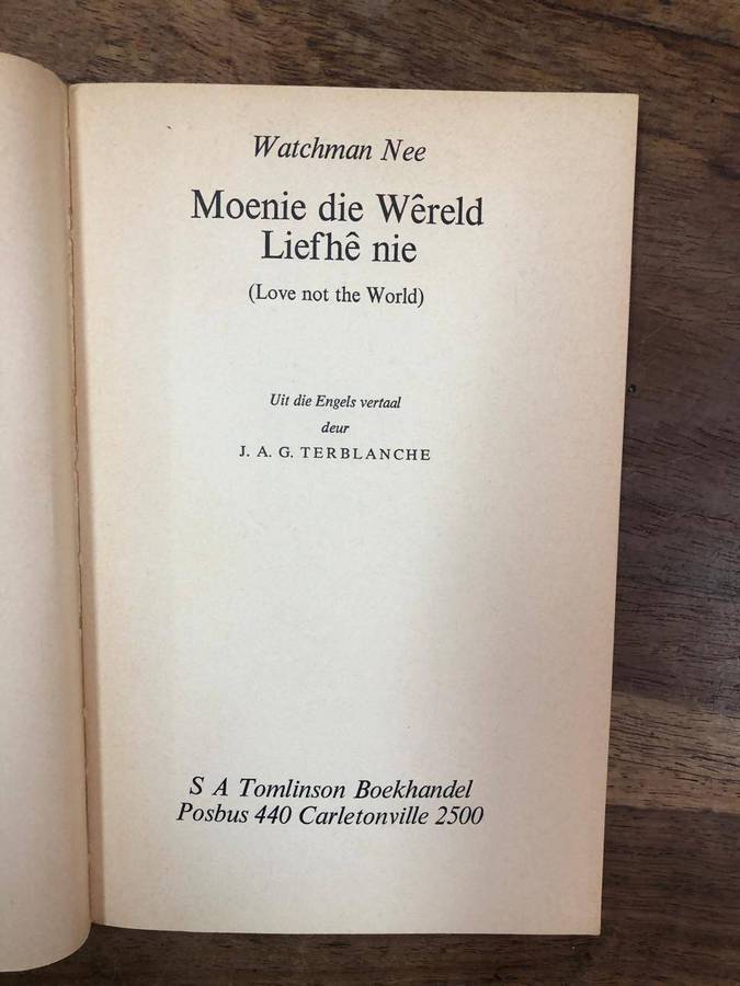 Moenie Die Wereld Liefhe nie Watchman Nee - Vertaal JAG Terblanche (Paperback) Minimal flaws except pages from 197 onwards has visible bending of pages. Refer to attached images.
