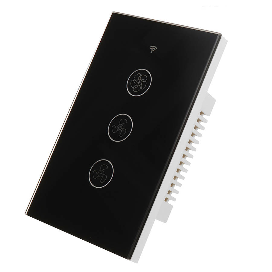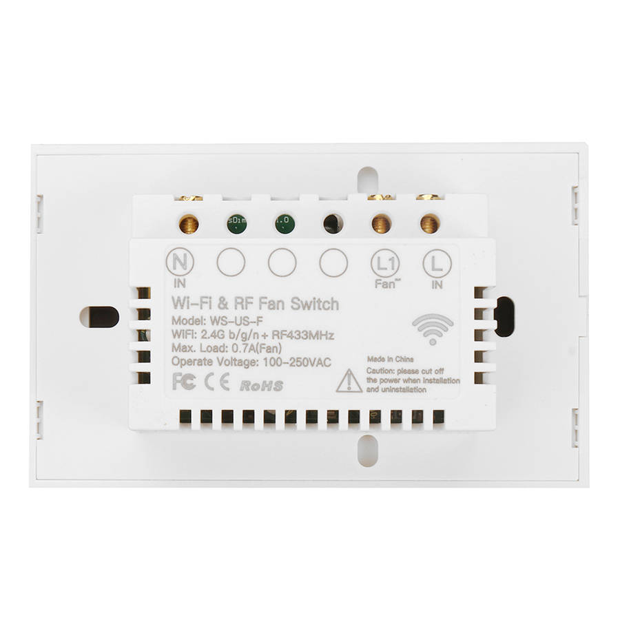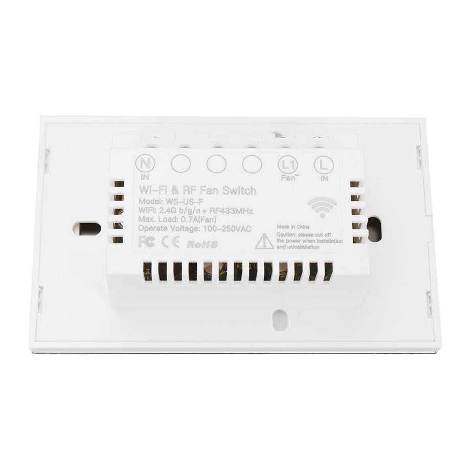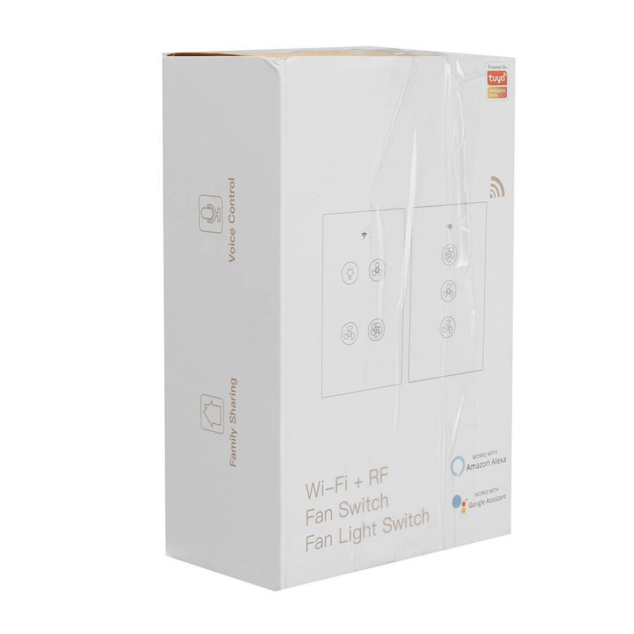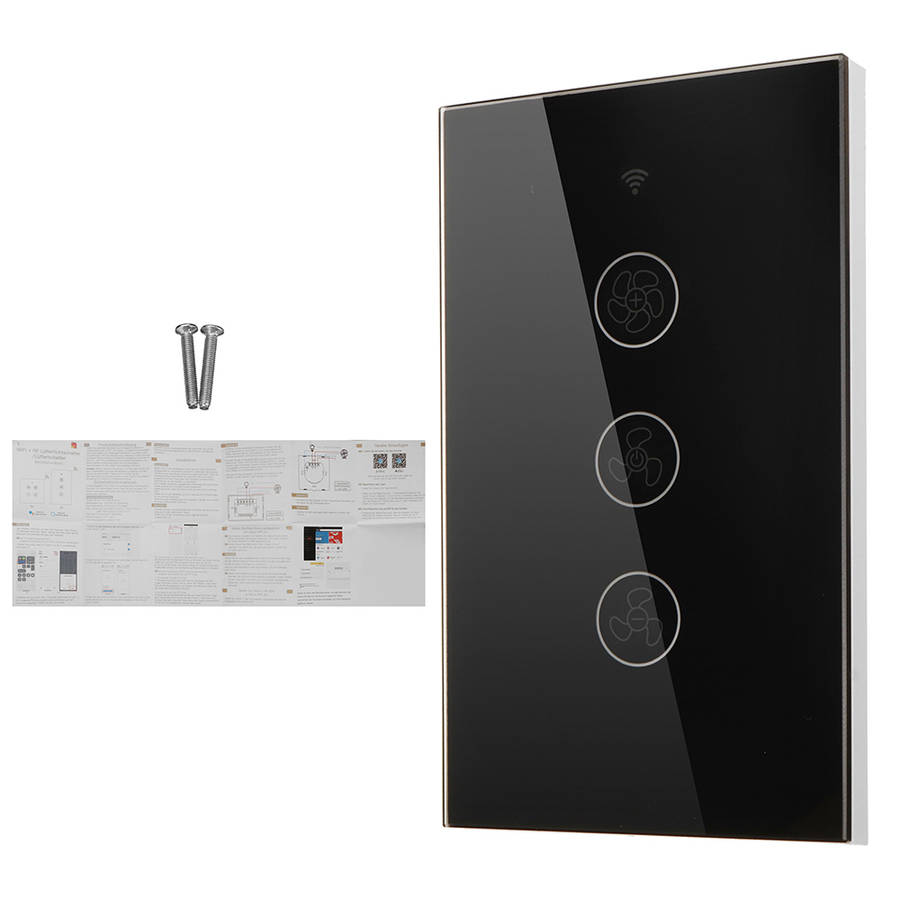 Features: 1. 2/3-way multi-control association to control 1 ceiling fan with multiple switches; anti-scratch tempered glass panel suits any home decor and allows for effortless touch control; you can multi-control associate this switch to multiple different switches in Smart Life App. 2. Non-interference control mode; allows the switch to be controlled via Smart Life, touch control, voice, and remote with RF433 frequency and 1527 encoding remote switch(not included); each control method works independently; achieve multi-control by associating to other smart switches 3 .Compatible with Alexa and Google Home for hands-free voice control; can also be controlled via Smart Life/Tuya app anytime, anywhere; setting relay status and remembers last relay status optional when powered off , backlight switch On/Off. 4. Take full control of connected appliances with timers, schedules and countdown (1/5/30 mins, 1 hour, etc.) with the app; share control with family and friends for added convenience 5. Neutral wire is required in your switch boxes to operate correctly; only supports 2.4 GHz network; offers easier pairing via WiFi and Bluetooth connectivity. Update1: Multi-control in a much easier way Update2:New pairing mode with WiFi+Bluetooth Update3:Backlight ON/OFF optional Update4:Relay status adjustable when power off Update5:RF frequency built-in for RF remote control Package included: 1 x US Ceiling Fan Switch