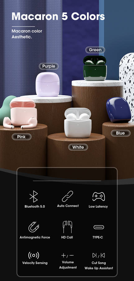 Bakeey J68 TWS Heaphones bluetooth 5.0 In-ear IPX5 Headsets Sport Bass Stereo Earbu... (COLOR: PINK)
