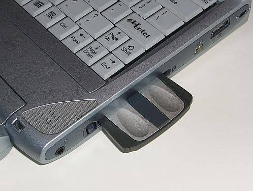 Take a look at the PCMCIA slot on my laptop, you’ll notice the green glow from what might be a memory drive or a tiny modem.