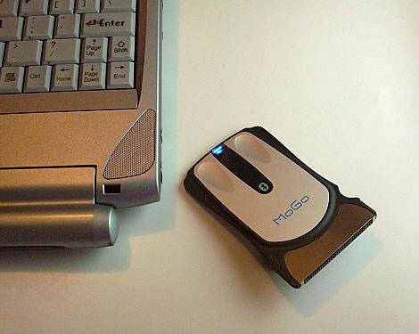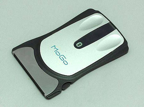 …the 3.4" long x 2.13" wide x 0.18" thick MoGo Mouse, which is literally the size and thickness of four typical credit cards.