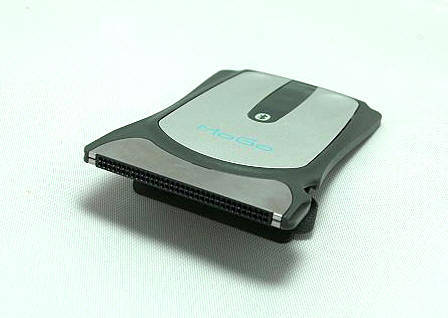 Here is a shot of the portion that plugs into the PCMCIA slot; this is also the raised end that points to the user’s palm.