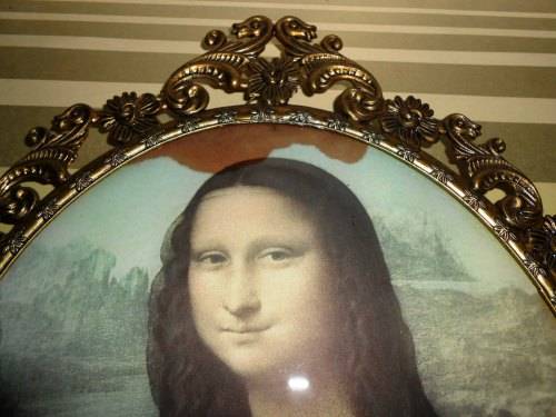 Please look at all pictures as they form part of the description.Item has usage related wear and tear and stain on Mona Lisa ,
