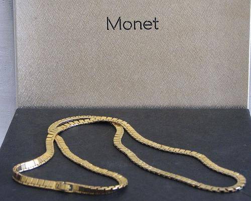 This is a lovely 1980s MONET Gold Tone Chain - It is very long and can be put on without undoing the clasp. It comes in the original box...