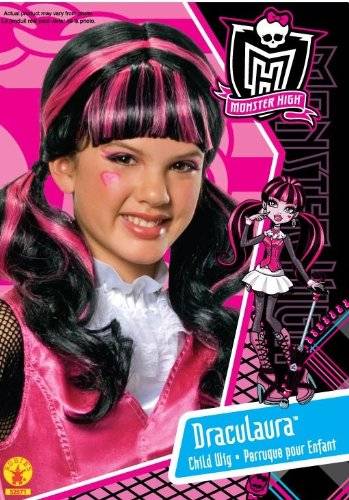 This Monster High Draculaura Wig is essential to having a complete costume. Draculaura; known as the pretty girl in school; features black hair with hot pink highlights; bangs and pigtails. No Draculaura costume is finished without this important accessory. Please Note: Costume; makeup or other accessories are not included with purchase.