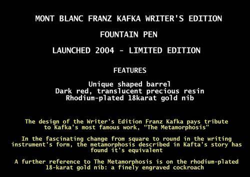MONT BLANC FRANZ KAFKA WRITER'S EDITION FOUNTAIN PEN