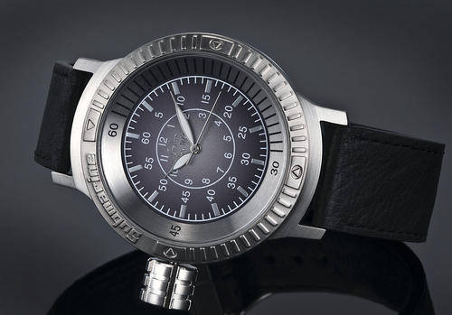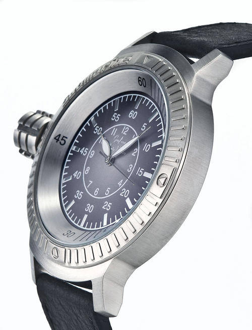 • Unusual extremely thick black padded leather strap black red stitching (in used look)