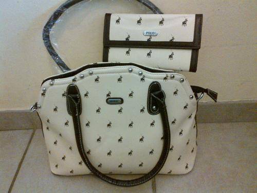 LOVELY POLO COMBO -BEIGE HANDBAG & WALLET. BAG: CENTRAL ZIP CLOSURE, FULLY LINED INNER-36CM X HEIGHT-28CM................WALLET: COINS ZIPPER, HOLDS CARDS & NOTES- 19 X 10CM