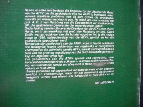 A4-grootte. Sagteband. Binding is stewig en teksgedeelte is skoon. Uitgegee 1980 met 407 bladsye en s/w en kleurillustrasies. Die verhaal van die ontstaan, groei en prestasies van die ATKV. Buiteblaaie het rakskaafmerke. Die rugkant is nie meer mooi vierkantig nie. Posgeld in RSA = R58.00.