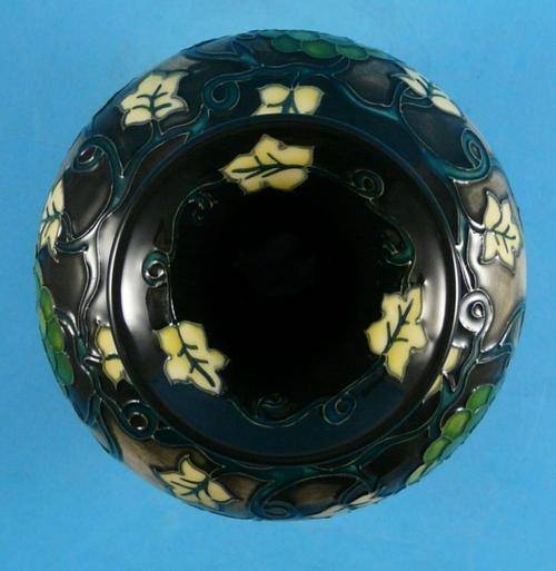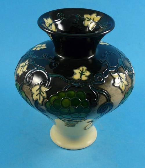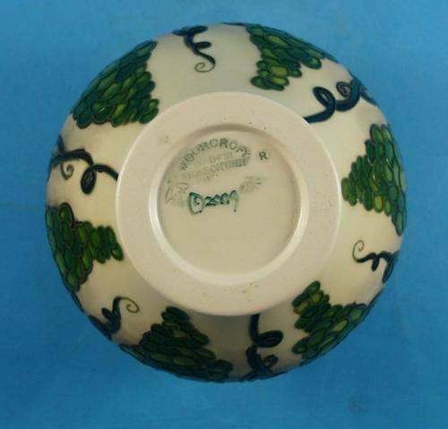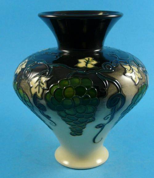 It was designed by the prestige painter Amanda Baker. It features a simply stunning pattern of green grapes hanging from elaborate scrolling vines on the elegant 11/6 shape. The pattern continues, unusually to the inside rim of the vase to create a quite superb vase. The base shows an umbrella showing the vase to be made in 2010( the symbol for that year).