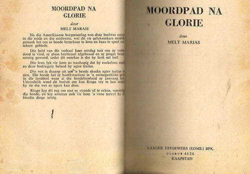 Moordpad na glorie - Melt Marais - Laager boek - Wilde Weste - vermoedelik 40's drukwerk
