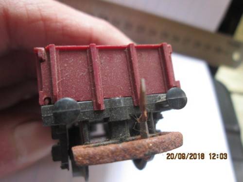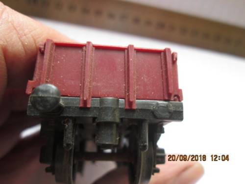 These were "toys" of mine 50 odd years ago....HO wagon with drop sides made in England. NOTE: missing coupling and buffer..enjoy