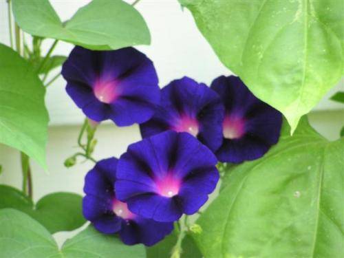 Morning glories are vines with lovely bell-shaped flowers. The purple species is very popular with gardeners. As the name suggests, the flowers bloom during the morning hours and then wither during the day under sunny conditions. Each dawn brings new fresh blossoms