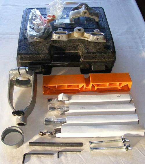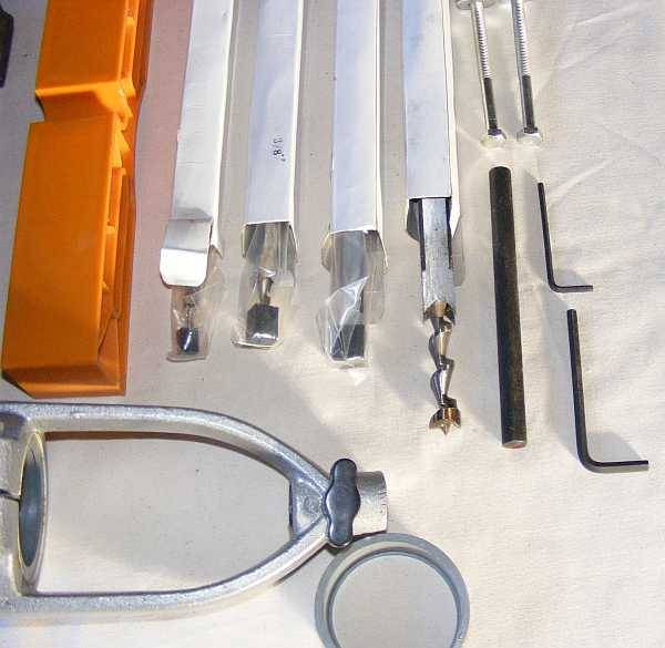 On offer is a virtually unused Morticing set for a pillar drill. The 5/8 bit has been used once