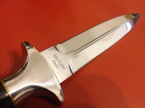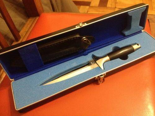 The Kershaw Trooper was made in follow up of the legendary Kershaw Spacial Agent. Similar look and feel, but the Trooper is bigger. One of my all time favourite daggers and an international collectors item. This one is in its case with sheath, and has never been used. I bought it from a private collector a long time ago. Please look at the photos and feel free to ask any question you might have. Good luck, happy bidding and please look at my other special knives