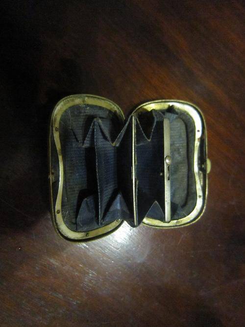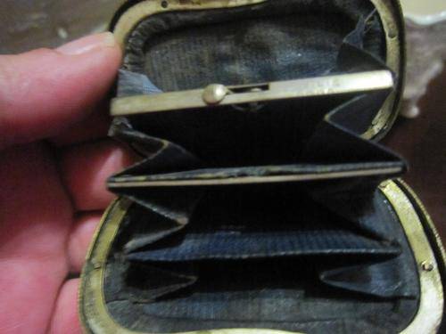 Exquiite little coin purse made from mother of pearl with a brass border and silver inner