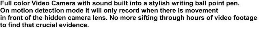 FULL color video camera pen. Only records when movement is detected. Introducing the new generation Motion Detection Spy pen.