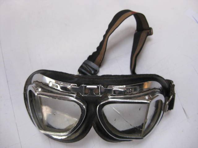 Motorbike glasses. Also used in open cockpit aircraft