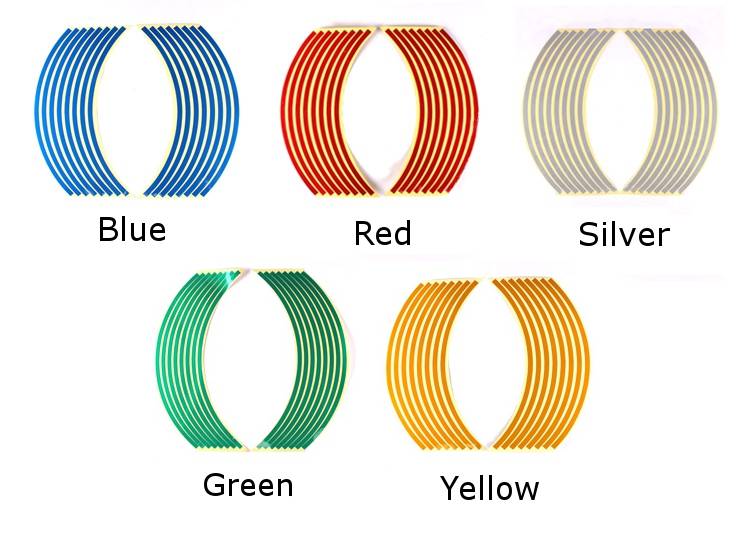 Description: The strips are curved (not straight) in order to adapt perfectly to the rim thus ensuring a perfect fit Designed to be able to decorate the 2 sides of the rims and the 2 wheels, the front and the back one The kit contains 16 strips, 4 strips for each rim and 2 more spare or for testing them before placement Made of PVC, are highly resistant to high temperatures (110 degrees), sunlight and high pressure washing