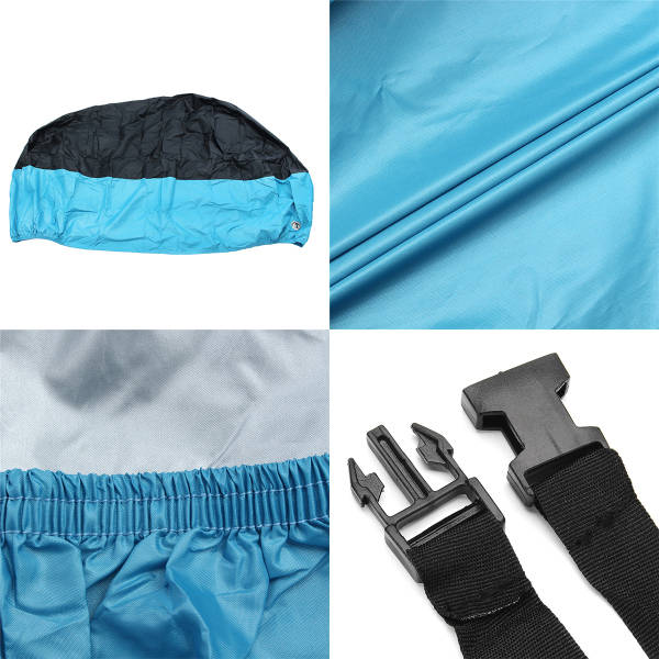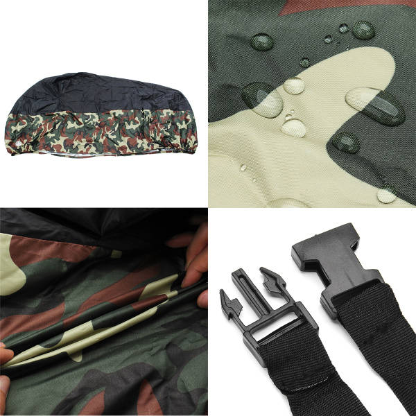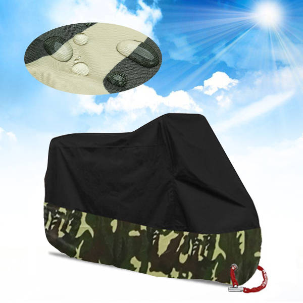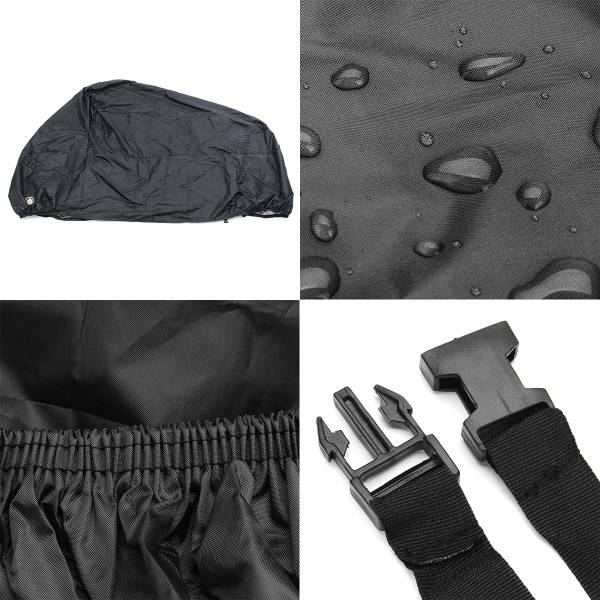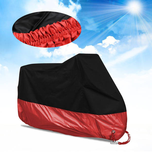 Description: 1.Breathable fabric ensures good air circulation 2.Double stitched,UV-treated,fade proof,washable 3.Water-repellent 4.Keep your motorcycle off rain/snow,dirt,dust,sun UV rays,bird mess 5.Elastic hem and side squeeze buckle underneath for a secure and snug fit 6.Easy to carry, fits most motorcycle's saddle bag after folded 7.With a free storage bag