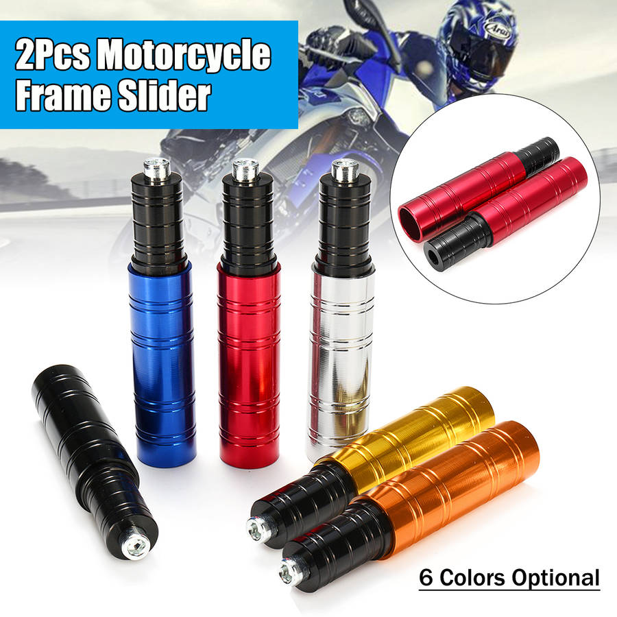 Specification: Color: Black/silver/orange/red/yellow/blue Material: Aluminum Alloy Frame Slider Size: Approx. 13.5x2.7cm/5.31x1.06 Bolt Size: 10mm Fitment: Universal for most models of motorcycles Package Included: 2 X Motorcycle Frame Sliders 2 X Bolt