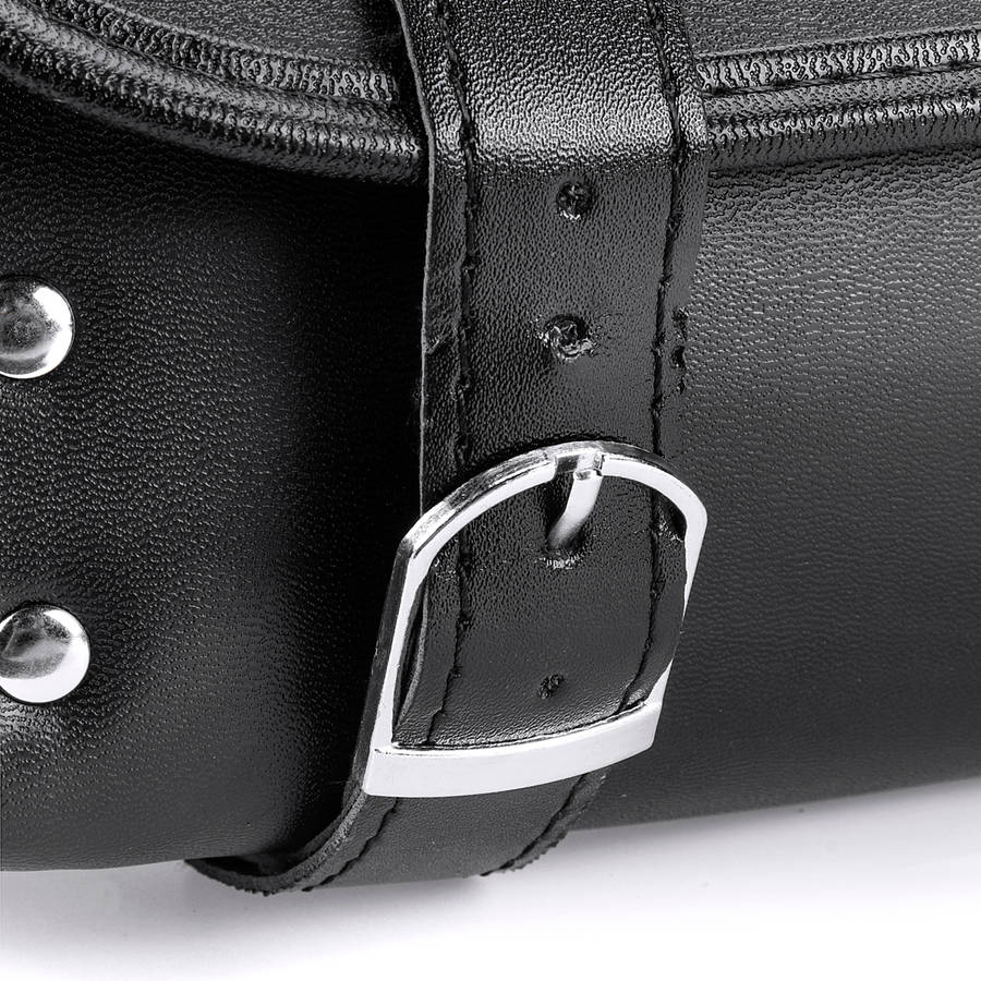 Descrioption: 1.Universal fit 2.Easy to install and use. 3.With two mounting straps. 4.Pannier saddle bags with chrome studs. 5.Making a adequate spacious room interior for all your tools and other essentials. 6.They are all weather proof and resistant to water or heat and provide safety to soft luggage from heat exhausts or rain. Specification: Color : Black Fitment : Universal Product Name : Motorcycle Saddlebag Bag Material : PU leather, metal buckles Note: 1.We provide clear pictures, measurements where possible. Please check as much as possible to make sure the item is the one that you need. 2. Please allow 0.5-1 inch difference due to manual measurement.(1inch=2.54cm) Package Included: 1 X PU Leather Saddlebag