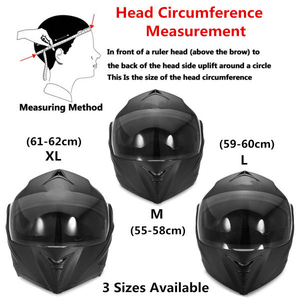 Specification: Shell Material: ABS(Acrylonitrile Butadiene Styrene) Color: Black Head Circumference: M(55-58cm), L(59-60cm), XL(61-62cm)