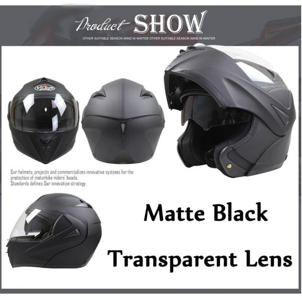 Motorcycle Helmet Full Face Dual Visor Modular Open Double Lens Safety Matte Black